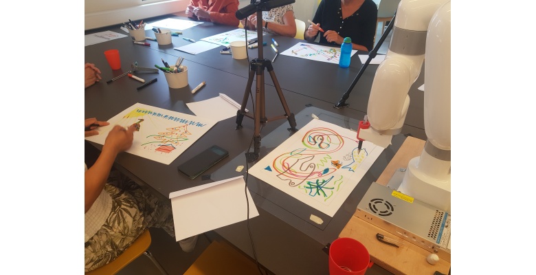 Daarom gaat dit promotie-onderzoek van Marianne Bossema, onderzoeker bij het lectoraat Digital Life, over de vraag hoe deze technologie ouderen kan helpen bij het maken van kunst, met een focus op tekenen en schilderen. Daarbij benaderen we de technologie kunnen gebruiken als hulpmiddel, bedoeld om te faciliteren en te verrijken, maar niet om menselijke interactie en begeleiding te vervangen. Menselijk contact is essentieel voor het welzijn en de voldoening van ouderen bij creatieve activiteiten. Vanuit die gedachte onderzoeken we samen met ouderen, kunstenaars, en studenten, wat de toegevoegde waarde van technologie kan zijn.